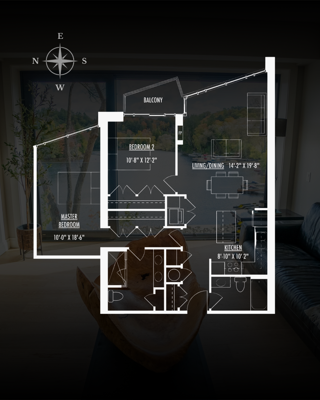 Suite 102 offers a refined architectural canvas shaped by natural light and panoramic river views. The open layout provides both flow and flexibility, allowing you to select finishes, textures, and details that reflect your personal style.